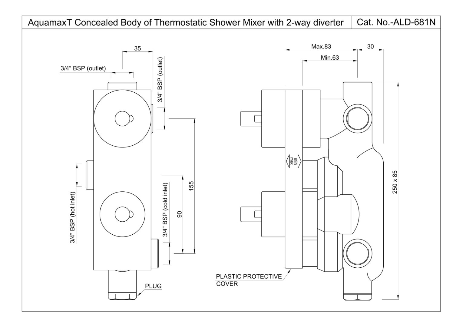 Jaquar, встраиваемая часть термоcтат. смесителя Aquamax для ванны/душа, 2 потребителя